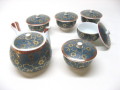 【九谷焼青粒鉄仙蓋付5客茶器揃】日本のおみやげです。
