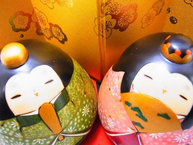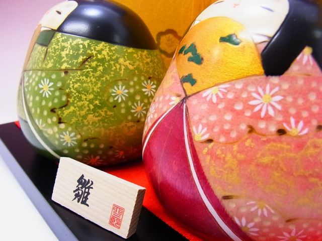 【日本のおみやげ】◆近代こけし【菊雛】(屏風と角台付)
