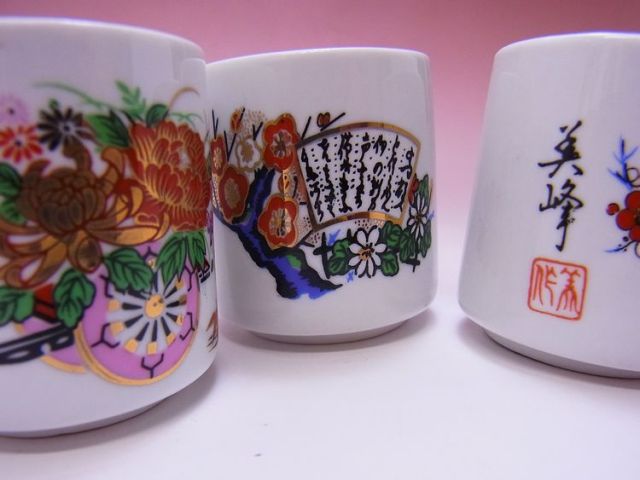 日本のおみやげ「ぐい飲みセット」【5個入】九谷柄です。