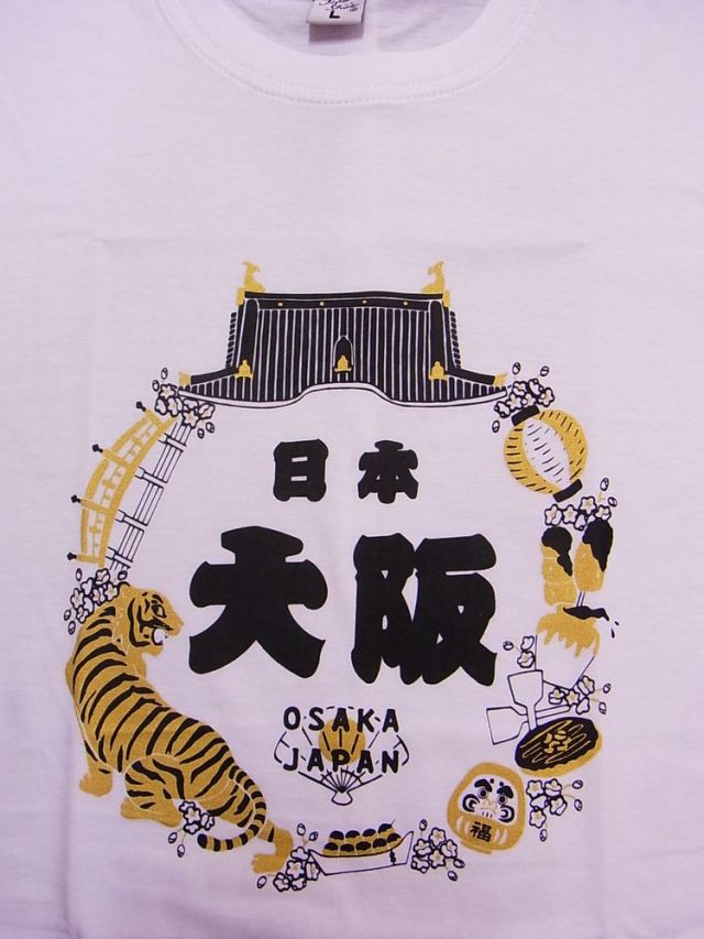 【日本のおみやげ】【ホームステイおみやげ】【日本土産】(漢字・和柄)◆和風Tシャツ【サークル大阪】大人用(M~LL)白地